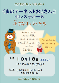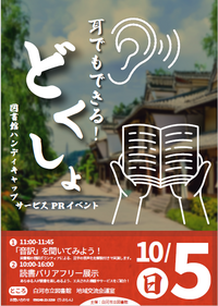 開始停止 本日の開館状況 りぶらん 表郷 大信 東 図書館名をクリックすると開館カレンダーに推移します お知らせ 2025月10月03日 【終了しました】図書館ハンディキャップサービスPRイベント「耳でもできる!どくしょ」のお知らせ【りぶらん】 図書館でおこなっている「ハンディキャップサービス」が体験できるイベントを開催いた... 2025月09月25日 イベント 10月のこども向け上映会のお知らせ【りぶらん】 10月のこども向け上映会は以下の作品を上映します。入場無料、申込不要。ぜひご来場... 2025月09月25日 イベント 10月の大人向け上映会のお知らせ【りぶらん】 10月の大人向け上映会は以下の作品を上映します。入場無料、申込不要。 当日は上映... 2025月09月24日 令和7年度 白河市立図書館 郷土講演会「松平定信の老中就任と江戸城~一橋治済の動向とともに~」 開催 白河市合併20周年記念特別企画展「松平定信の文化力―つくり・しらべ・うつし・つた... 2025月09月07日 お知らせ 【9/18開催!】東図書館開館30周年感謝祭 東図書館開館30周年感謝祭を開催します。 クジや、スタンプラリーもあるので、ぜ... 過去のお知らせを見る>>